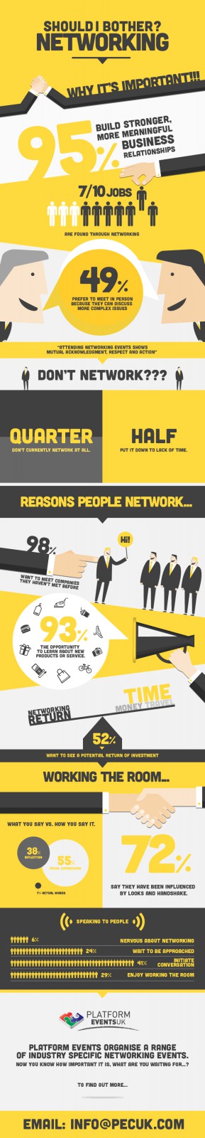 There are so many reasons to consider attending a networking event, but if you’re still not convinced check out our infographic below to find out why networking is an essential and worthwhile part of doing business…